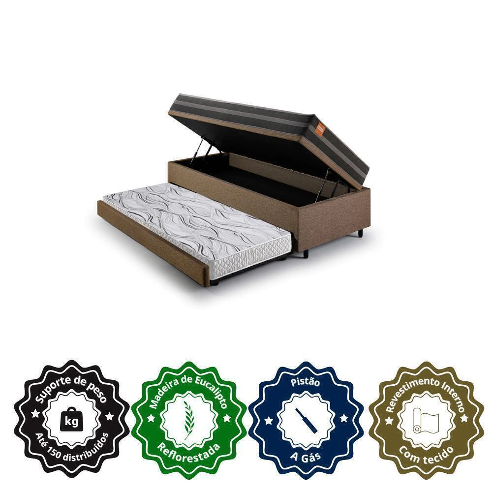 A cama auxiliar acompanha um colchão de espuma Ecoline D20 Ecoflex, ideal para uso diário, suportando até 60kg.