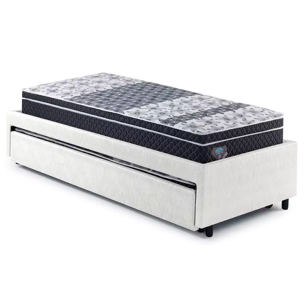 Conjunto Bicama BedSleep Solteirão Courino Linho Branco com 1 Colchão Gran Sleep Ecoflex Solteirão 96x203 e 1 Colchão Gran Sleep Ecoflex Solteiro 88x188