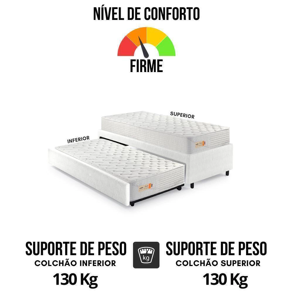 - Colchão Superior: 88x188 cm (sem limite de altura).