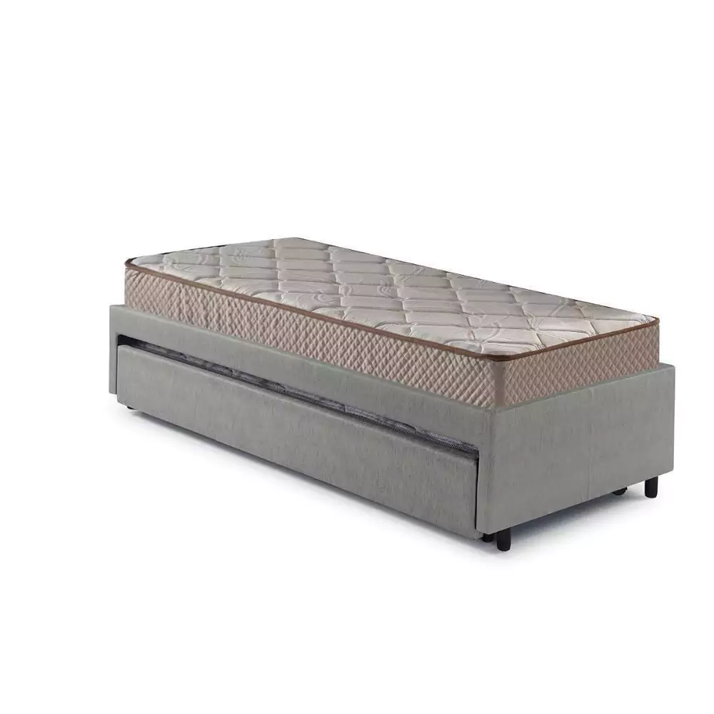 Conjunto Bicama Bedsleep Solteiro Courino Linho Cinza com 2 Colchões Espuma Supreme Malha D33 Gazin