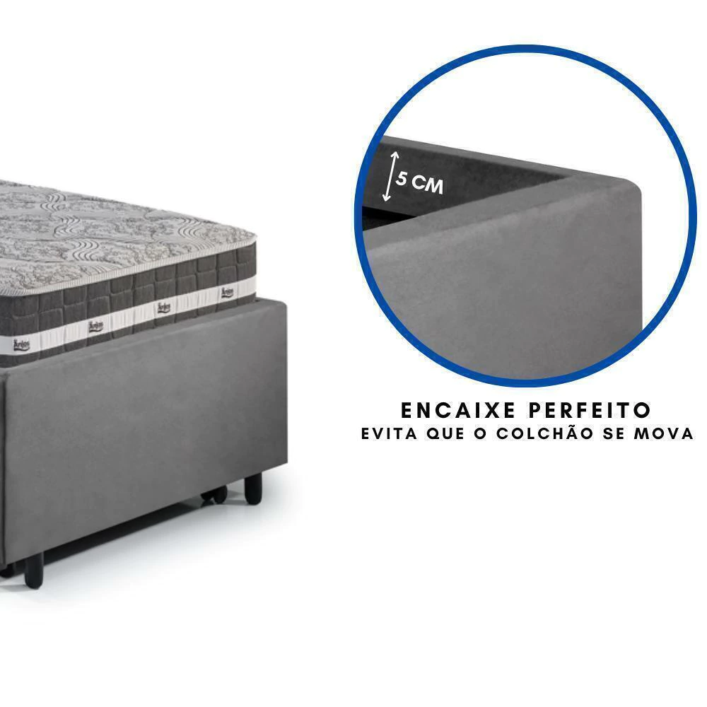 Conjunto Bicama Bedsleep Solteiro Suede Cinza com 2 Colchões Black Graphite Molas Ensacadas Anjos